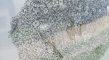 This piece is hand-drawn with pen. Even though the details are simple, the sheer amount of leaves and tiny marks draws you into look closer. The image of a tree was inspired by the relationship I have with my wife. You can read the story behind the piece below.